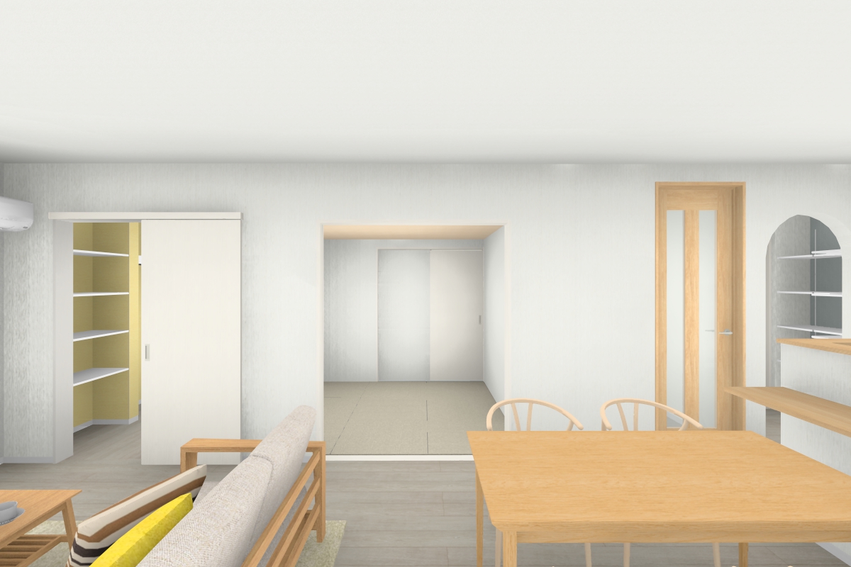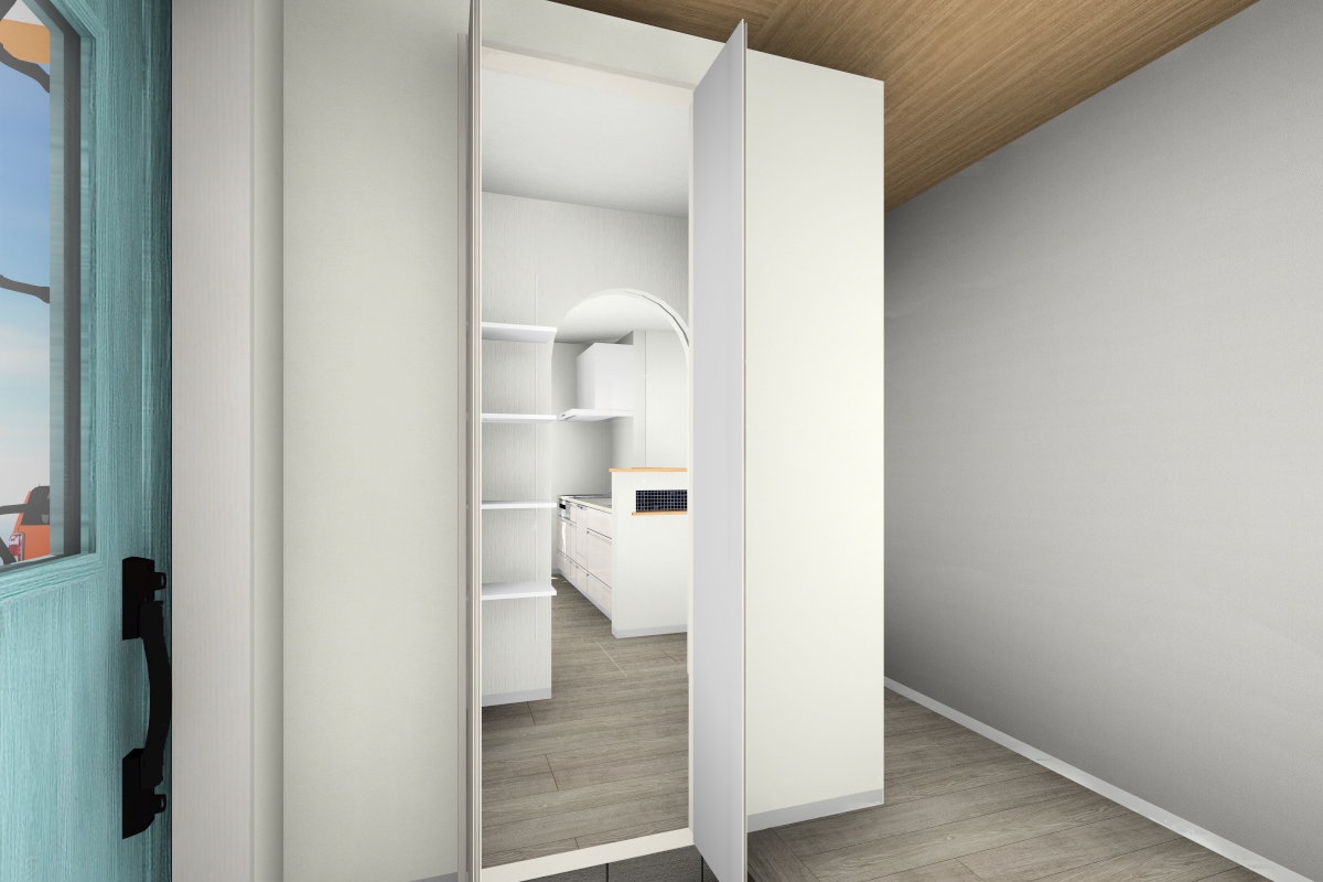 玄関からパントリー、キッチンへと抜けるスムーズな動線が魅力。帰宅後の片づけや料理準備もラクにこなせて、家族の時間がもっと豊かに。家事も育児も、軽やかに回る“時短の家”です。