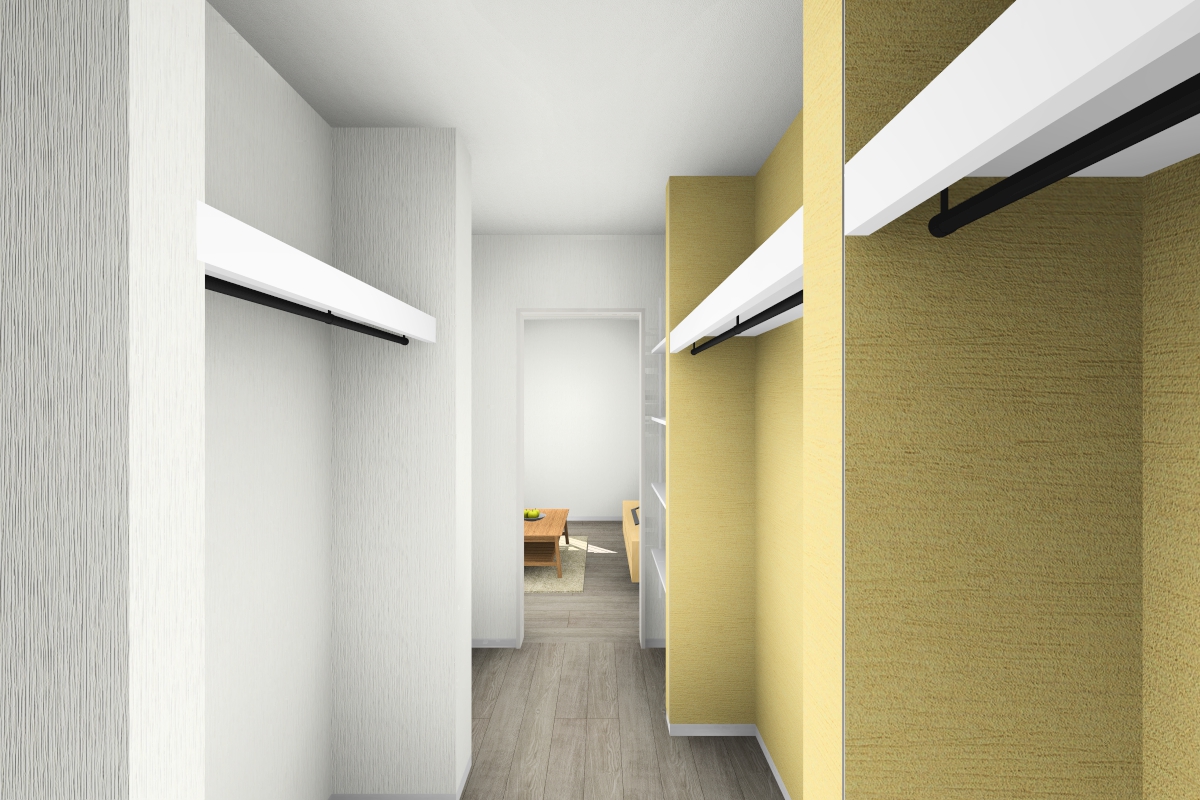 1階・2階それぞれに3帖以上の大容量クローゼットを完備。衣類から日用品までまとめて管理できるから、暮らしがすっきり整います。家族全員が使いやすい“共有収納”の理想形。