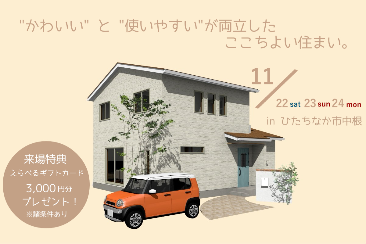 ひたちなか市にて、お施主様こだわりの住まいの完成見学会を開催します。