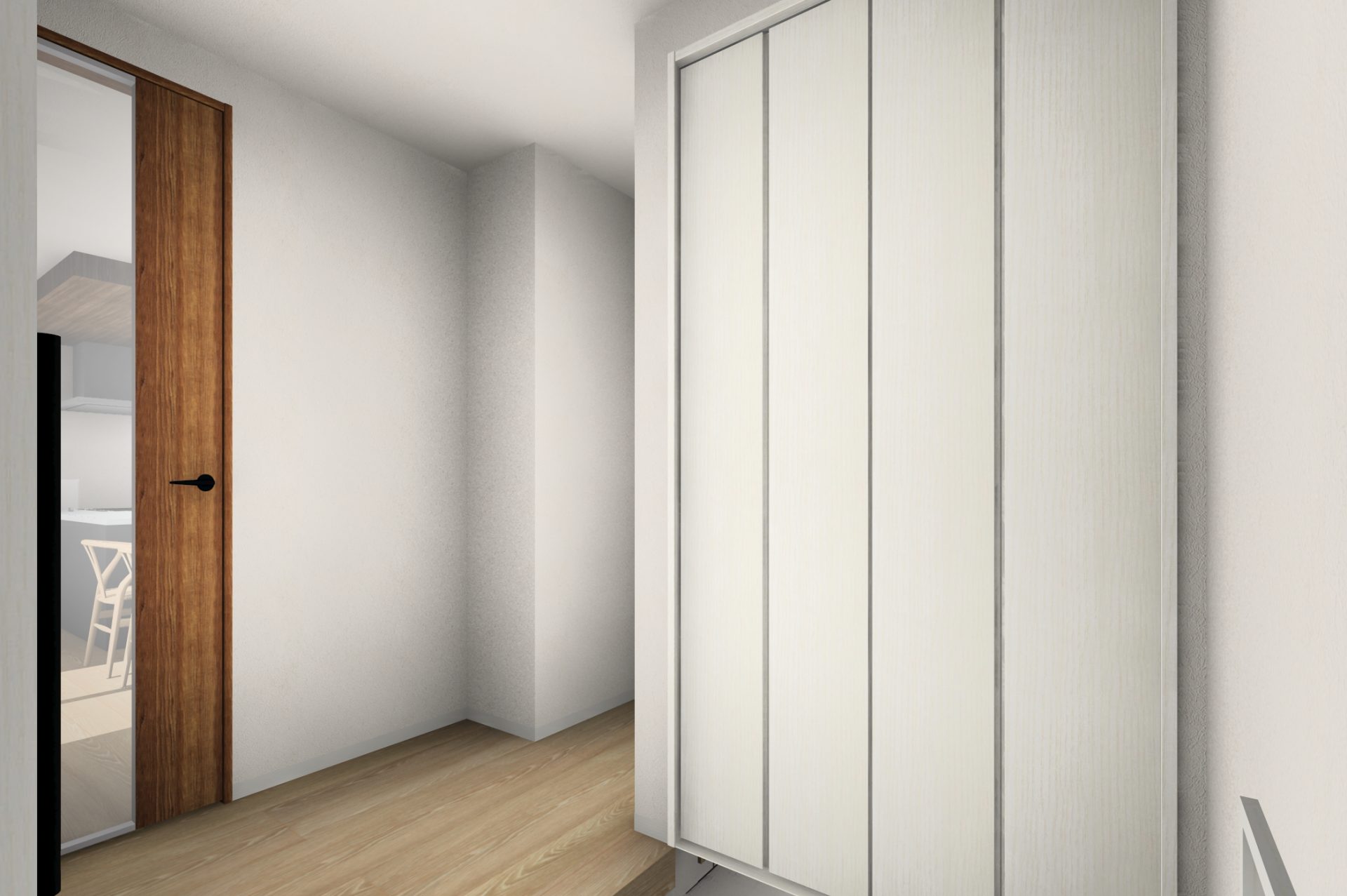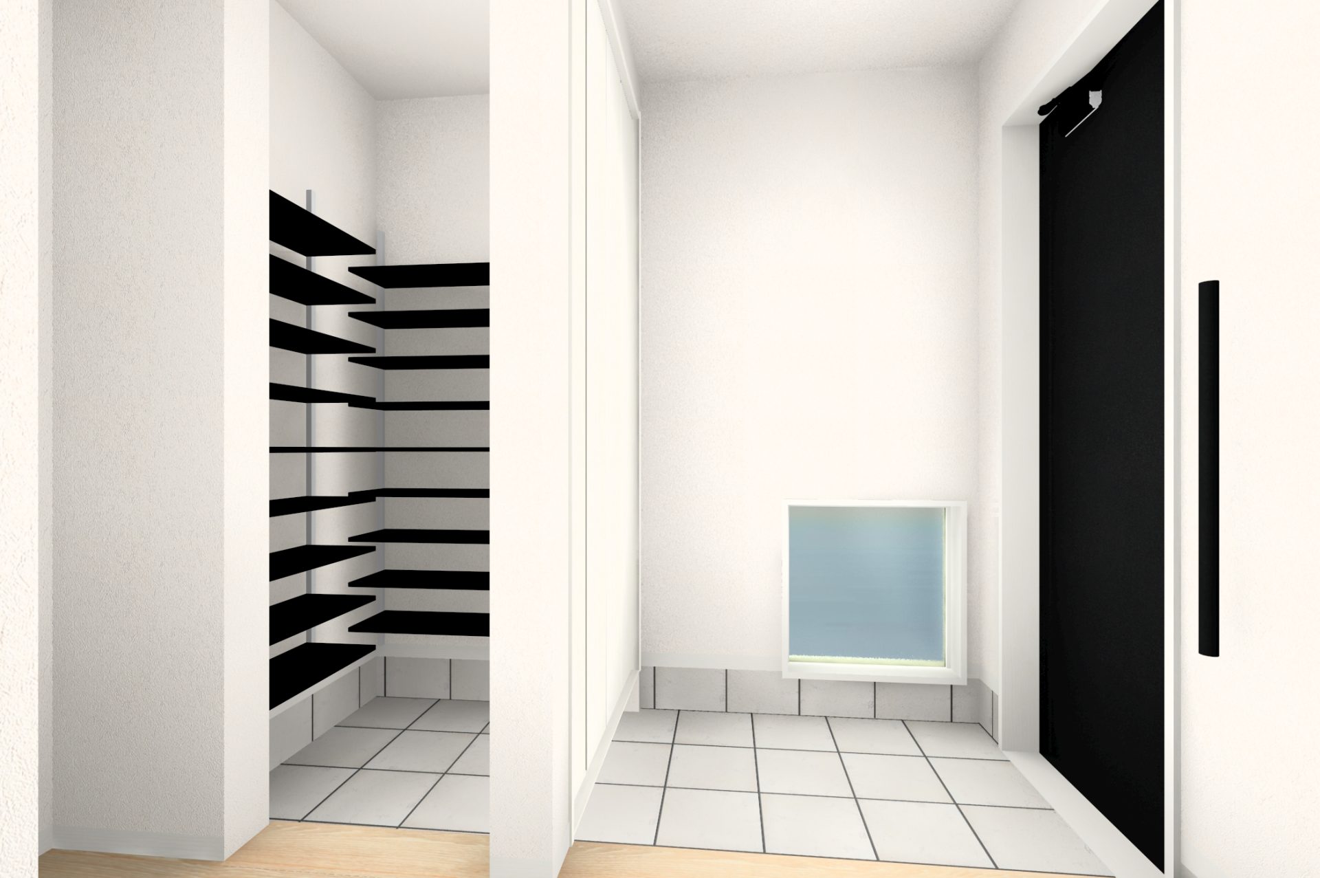 玄関はゆとりあるポーチで雨の日も安心。家族それぞれの持ち物を分けて収納できるよう、土間まわりにも工夫を凝らしました。帰宅動線がスムーズで“整う暮らし”が実現します。