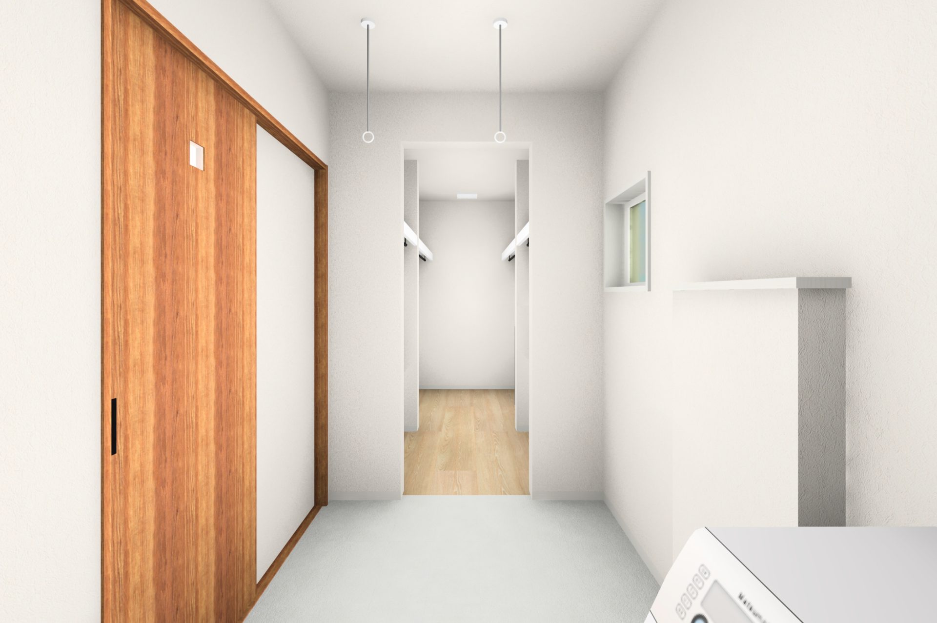 洗面・トイレが独立し、脱衣室とランドリー・ファミクロが隣り合うことで、