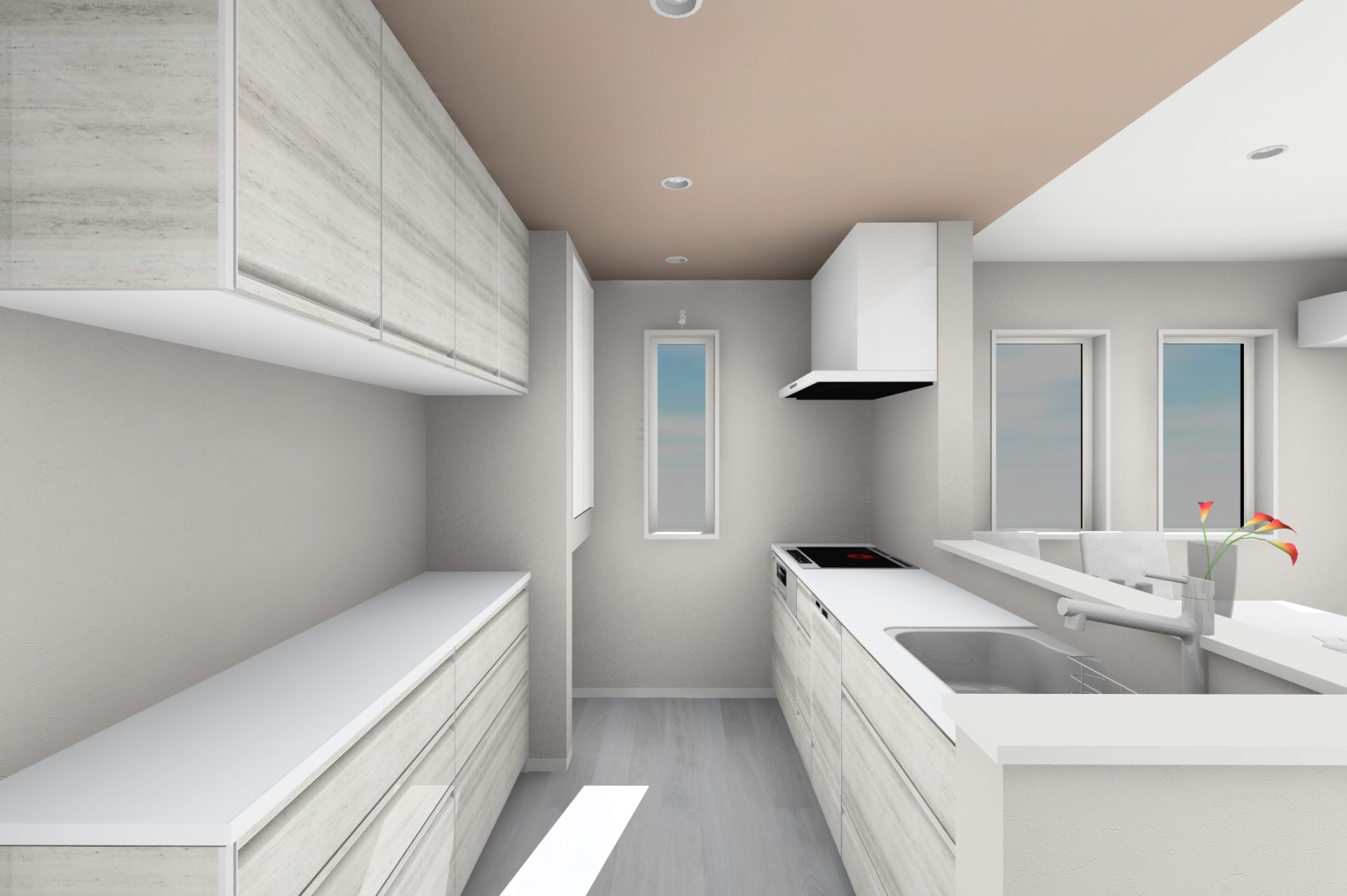 ④ 下がり天井がおしゃれなキッチンと深型食洗器付き設備