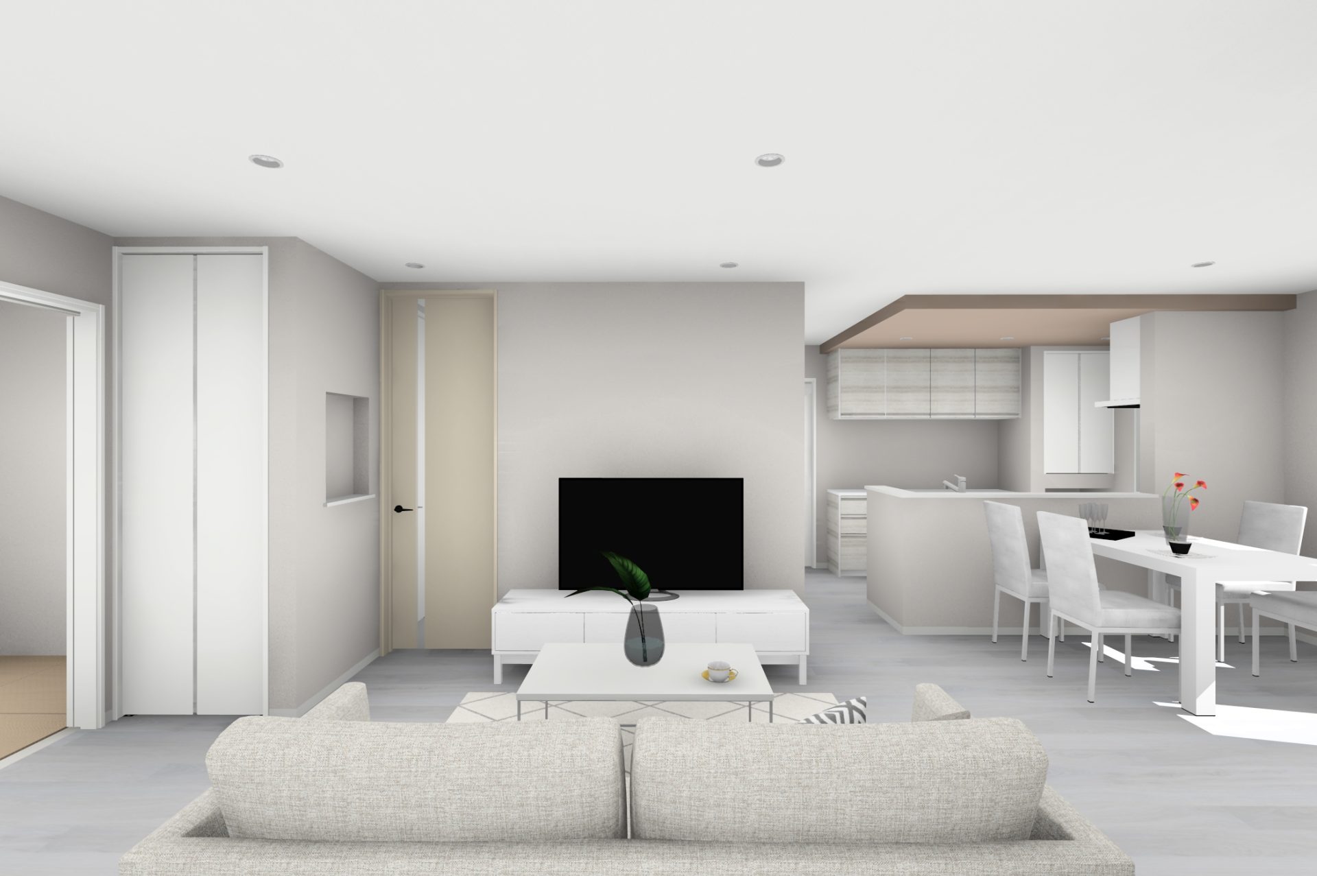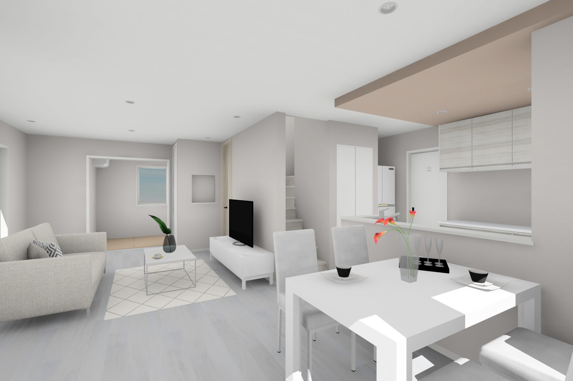 広々としたLDKに大きな窓を組み合わせ、明るく開放的な空間を演出。外の光や風を心地よく取り込みながら、家族の時間をゆったり楽しめる“のびやかな暮らし”が実現します。