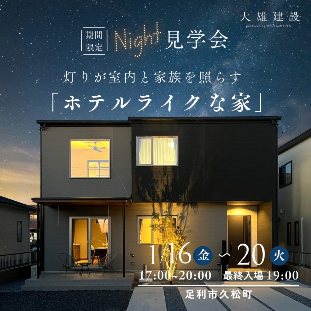 【足利市久松町】夜のモデルハウス見学会【完全予約制】